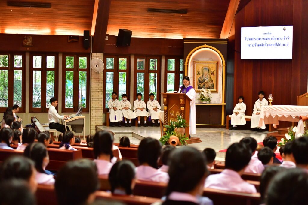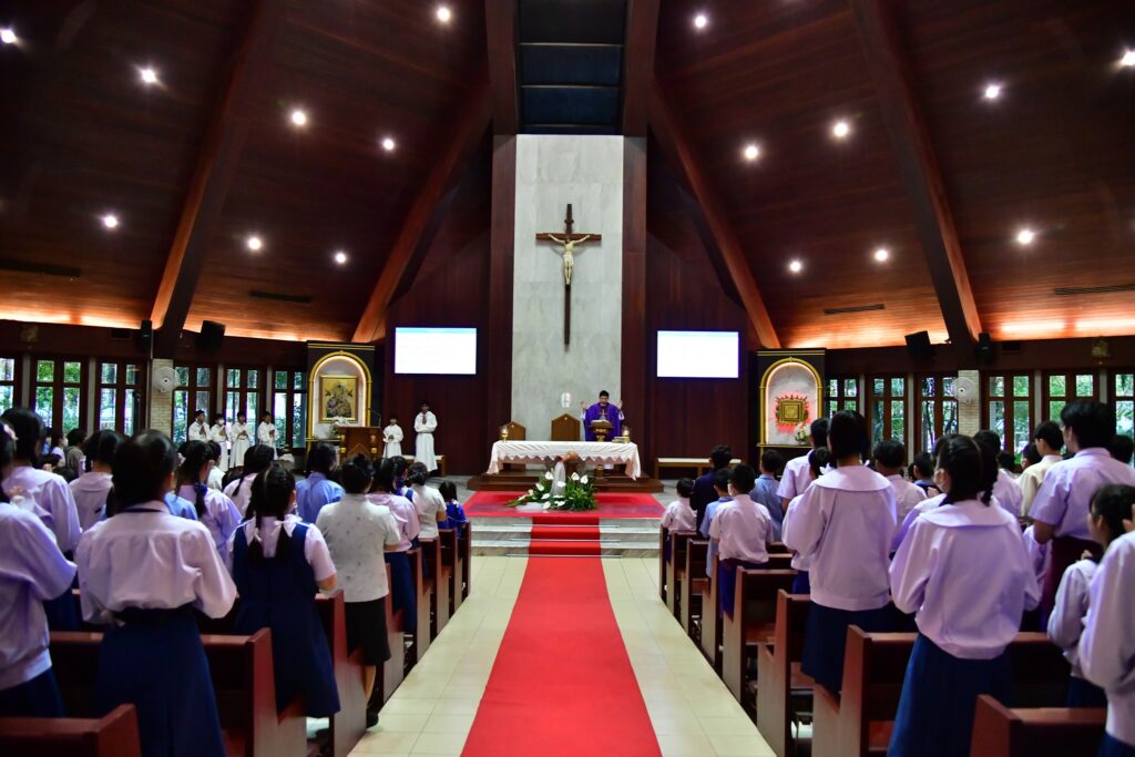 วันพุธที่ 18 กุมภาพันธ์ พ.ศ 2568 ผู้บริหารคณะครูและผู้แทนนักเรียนเข้าร่วมพิธีบูชาขอบพระคุณปิดปีการศึกษา 2568 ณ วัดพระมารดานิจจานุเคราะห์ โดยมี คุณพ่อวีรยุทธ เกียรติสกุลชัย เป็นประธานในพิธีบูชาขอบพระคุณปิดปีการศึกษา 2568 ซึ่งตรงกับวันพุธรับเถ้า