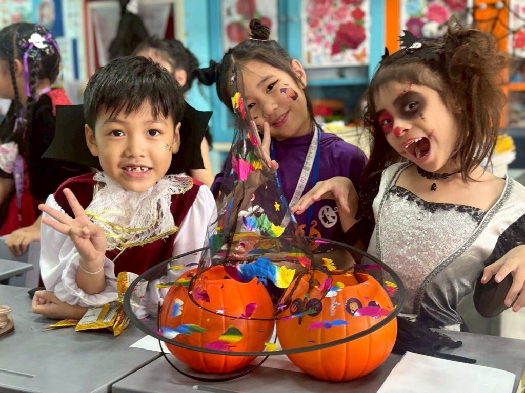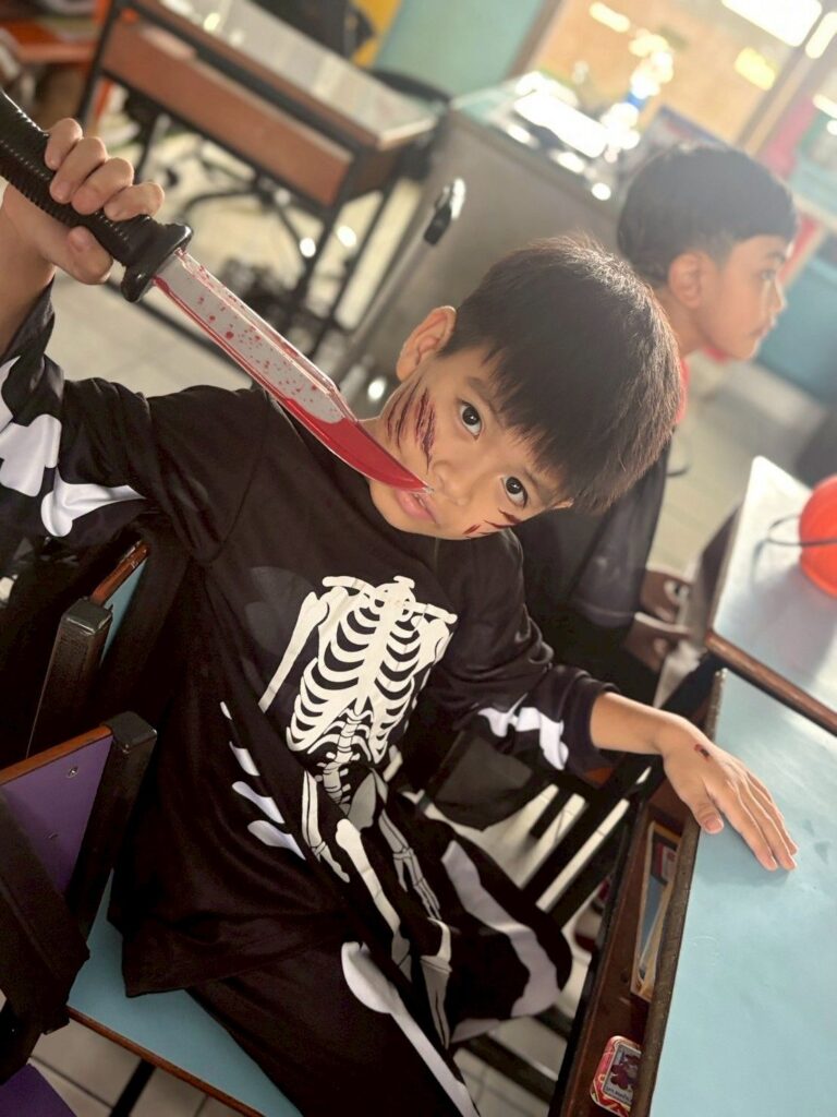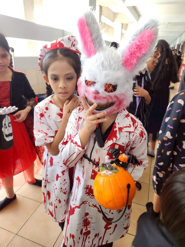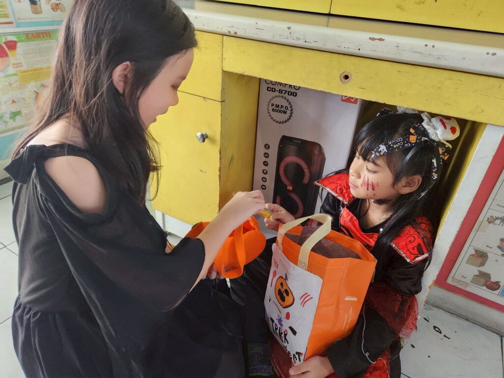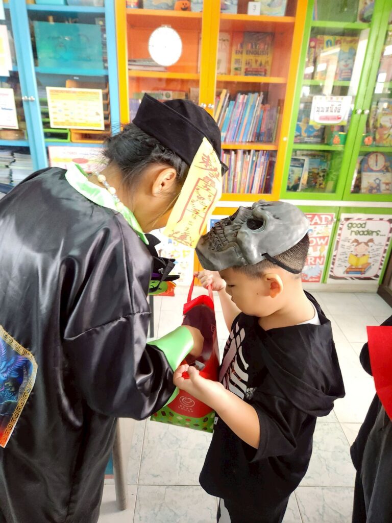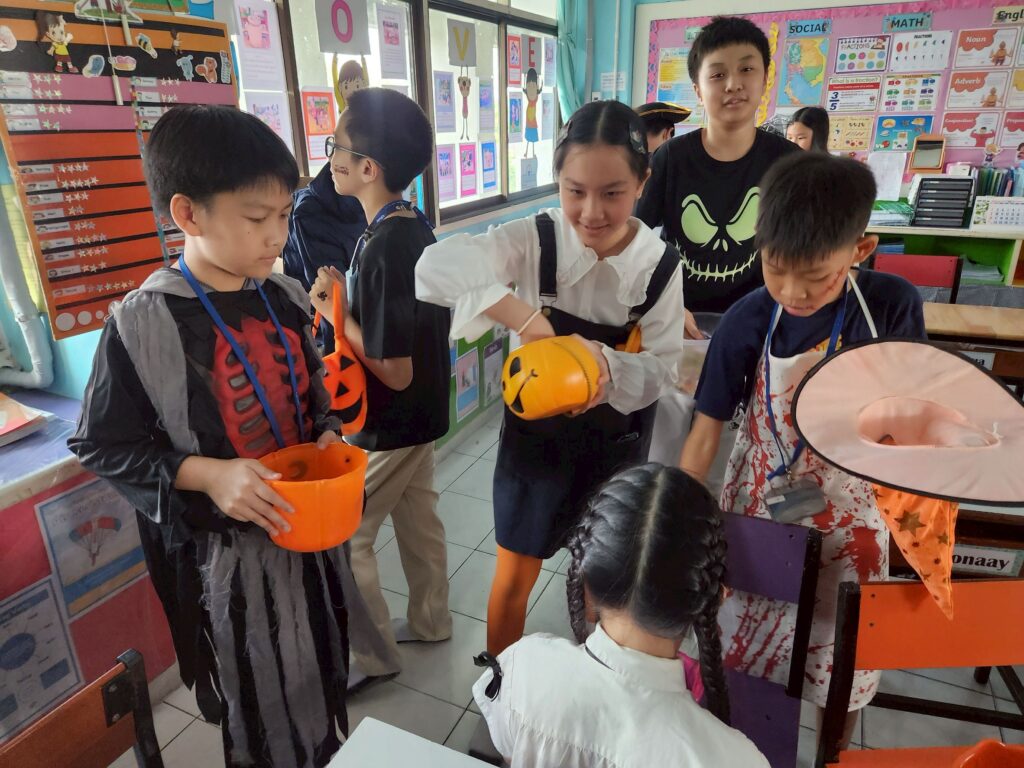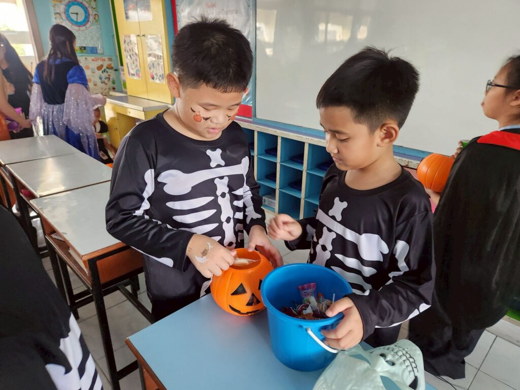 On October 31, the English Program organized a Halloween Day activity, giving students the opportunity to learn about the origins of Halloween. The activities included telling the history of Halloween, performing arts, watching movies, trick-or-treating, and dressing up as various ghosts. Trick-or-treating and exchanging candy provided a fun and enjoyable atmosphere. Halloween falls on the night before All Saints’ Day in Christianity, when the spirits of the dead are believed to come out to wreak havoc on the human world. The ancient Celts therefore held a celebration to welcome these spirits and pray that they would not harm them.