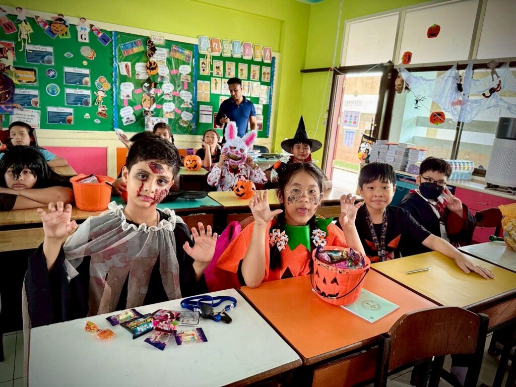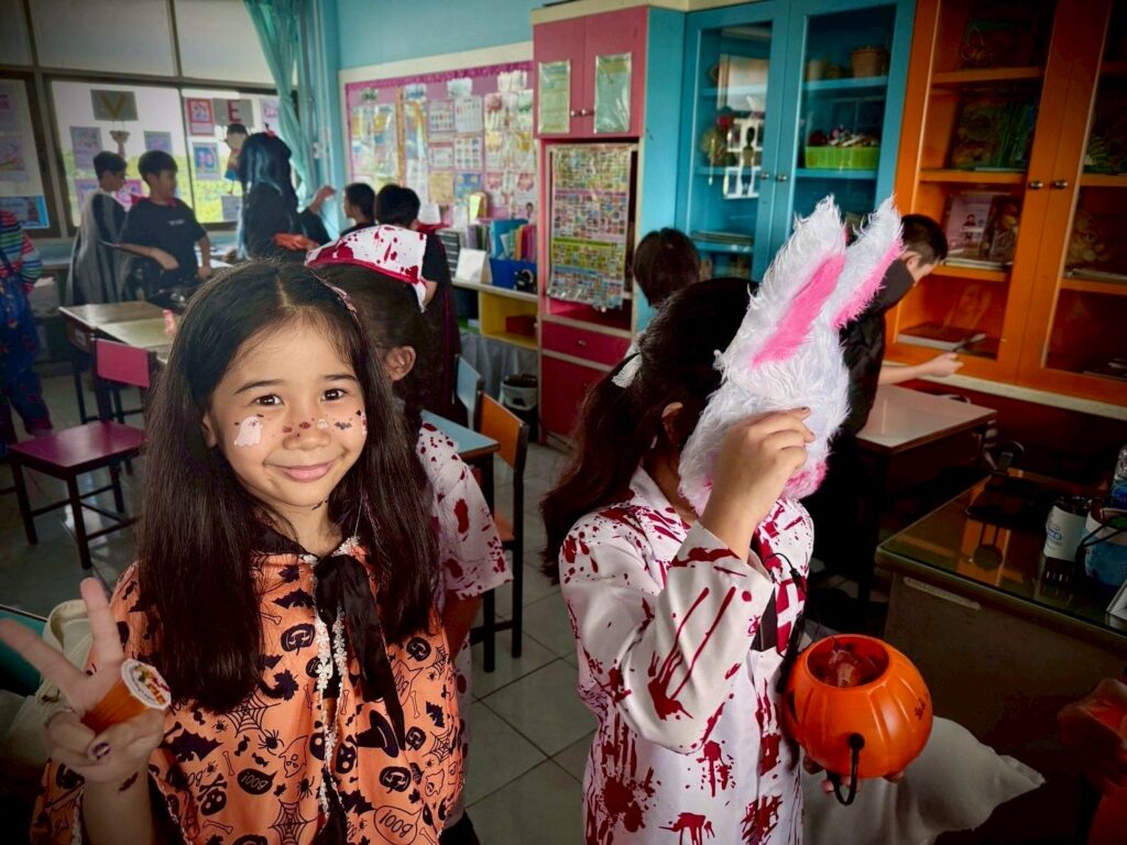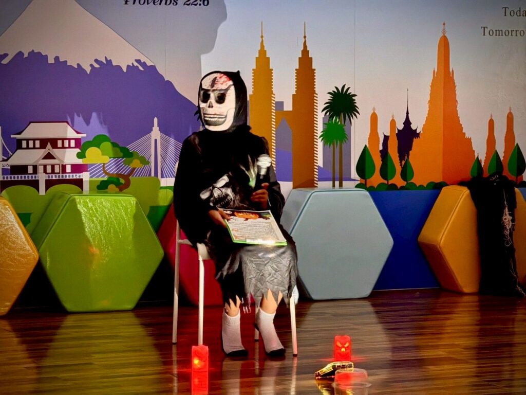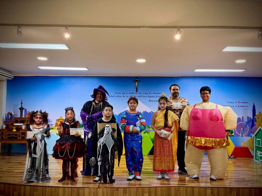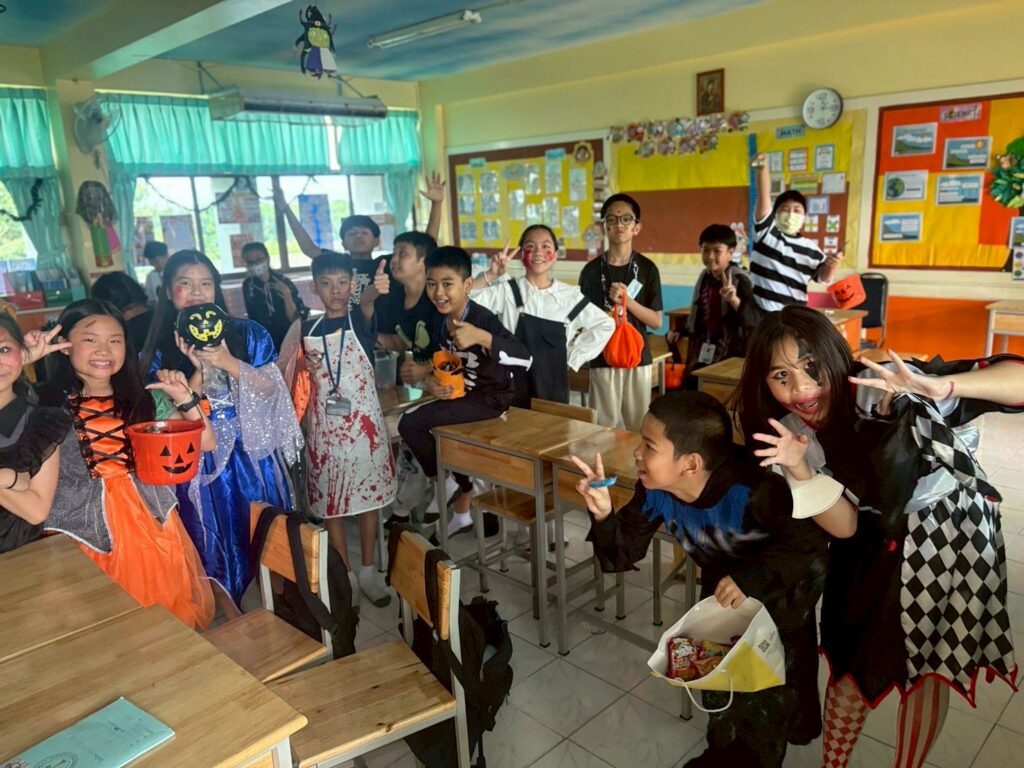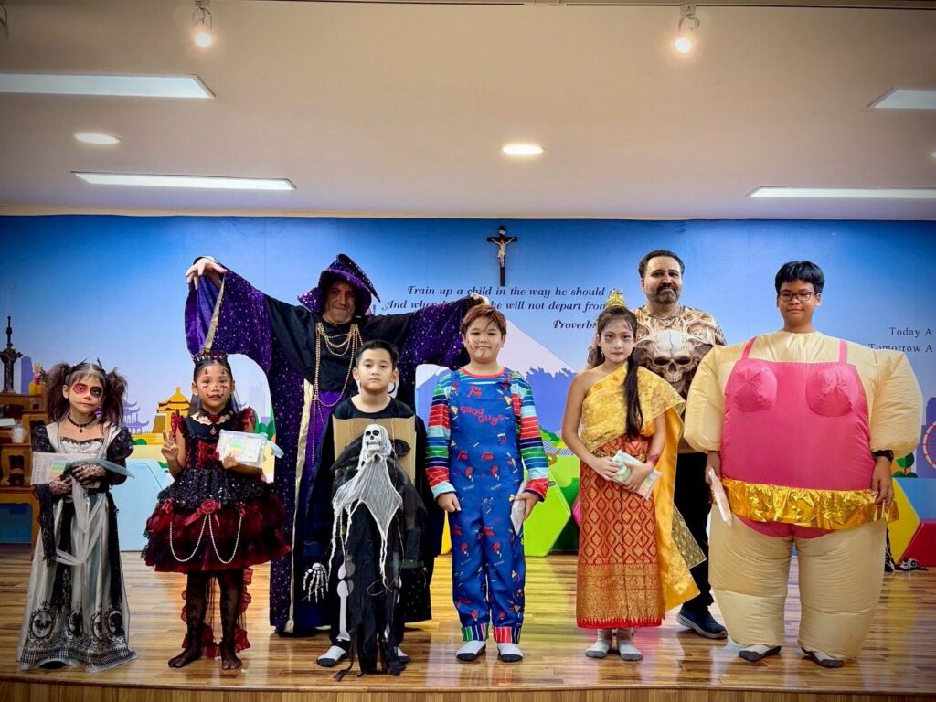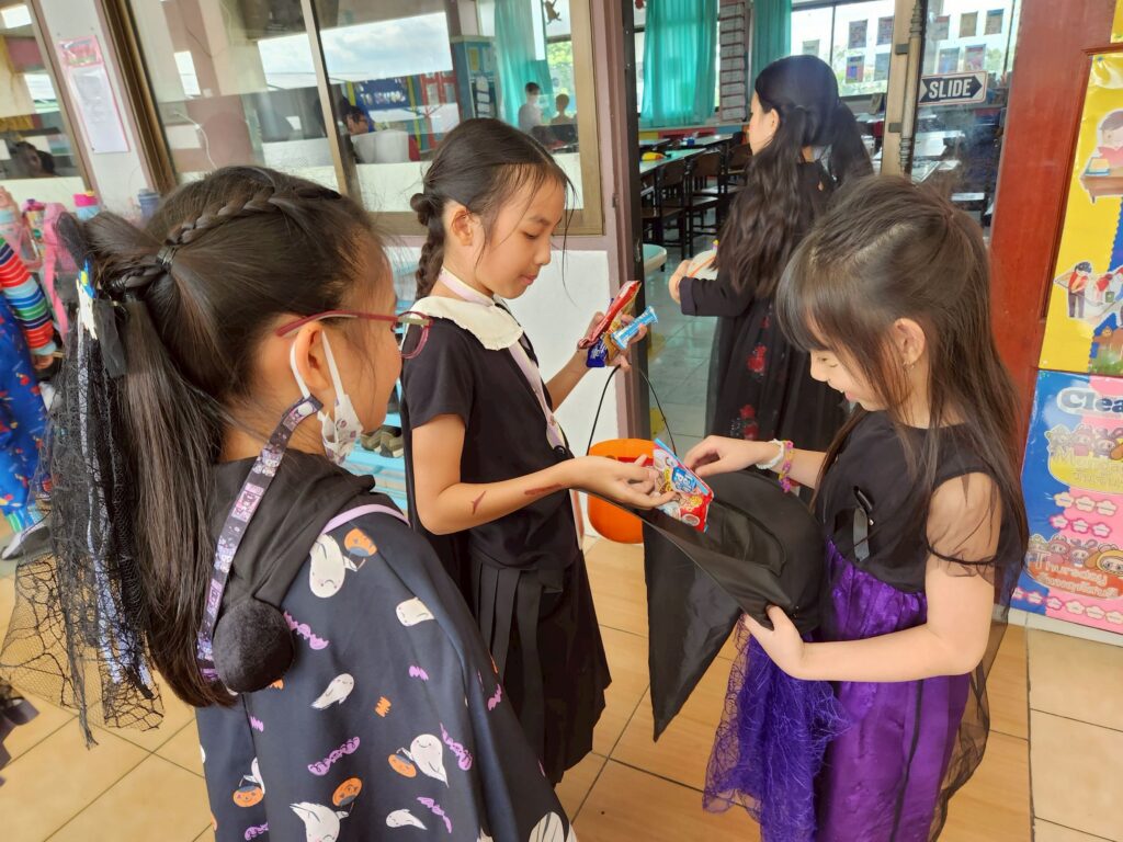 On October 31, the English Program organized a Halloween Day activity, giving students the opportunity to learn about the origins of Halloween. The activities included telling the history of Halloween, performing arts, watching movies, trick-or-treating, and dressing up as various ghosts. Trick-or-treating and exchanging candy provided a fun and enjoyable atmosphere. Halloween falls on the night before All Saints’ Day in Christianity, when the spirits of the dead are believed to come out to wreak havoc on the human world. The ancient Celts therefore held a celebration to welcome these spirits and pray that they would not harm them.