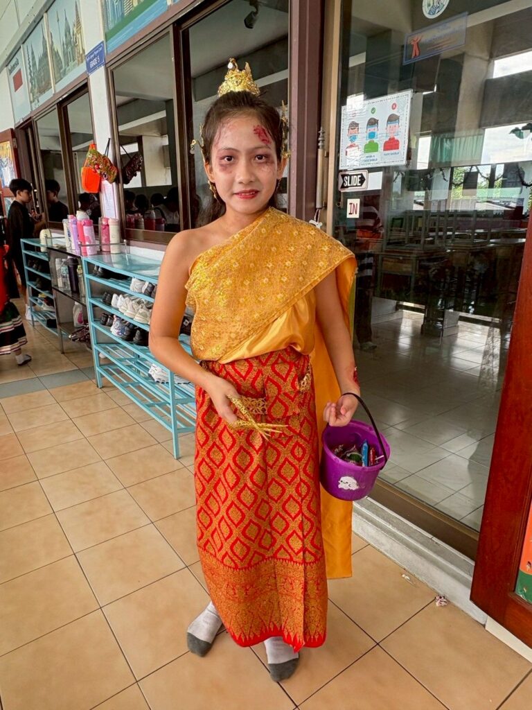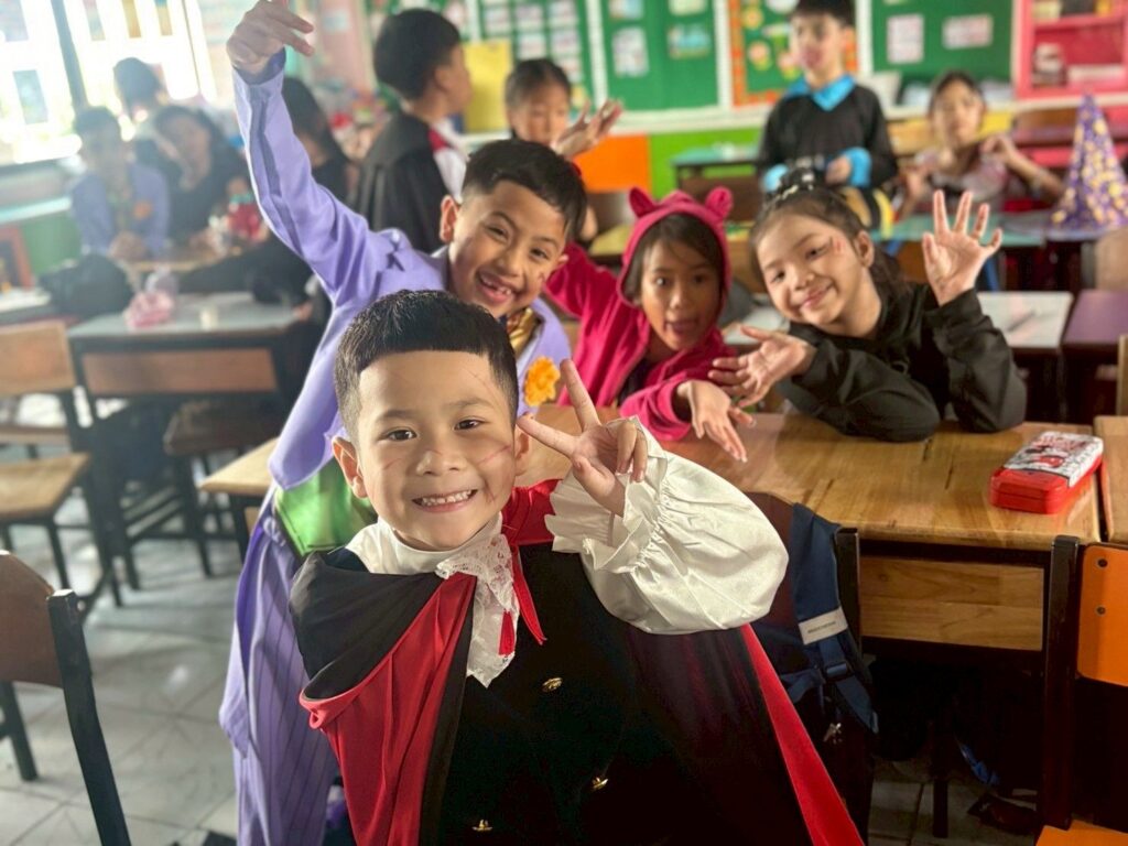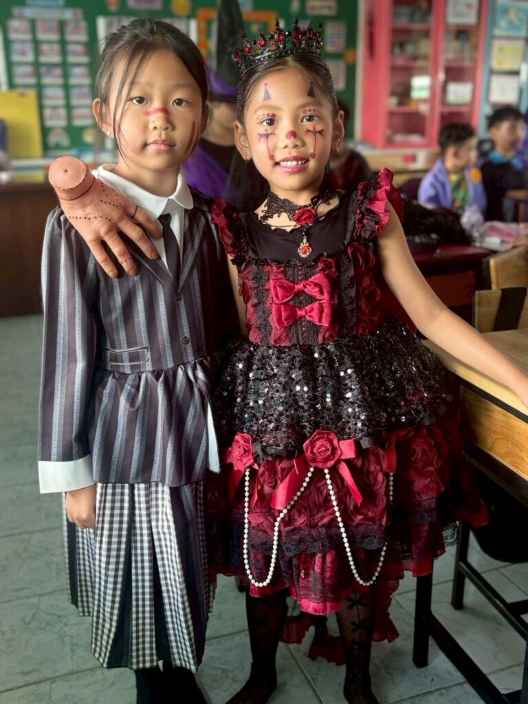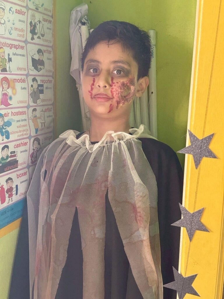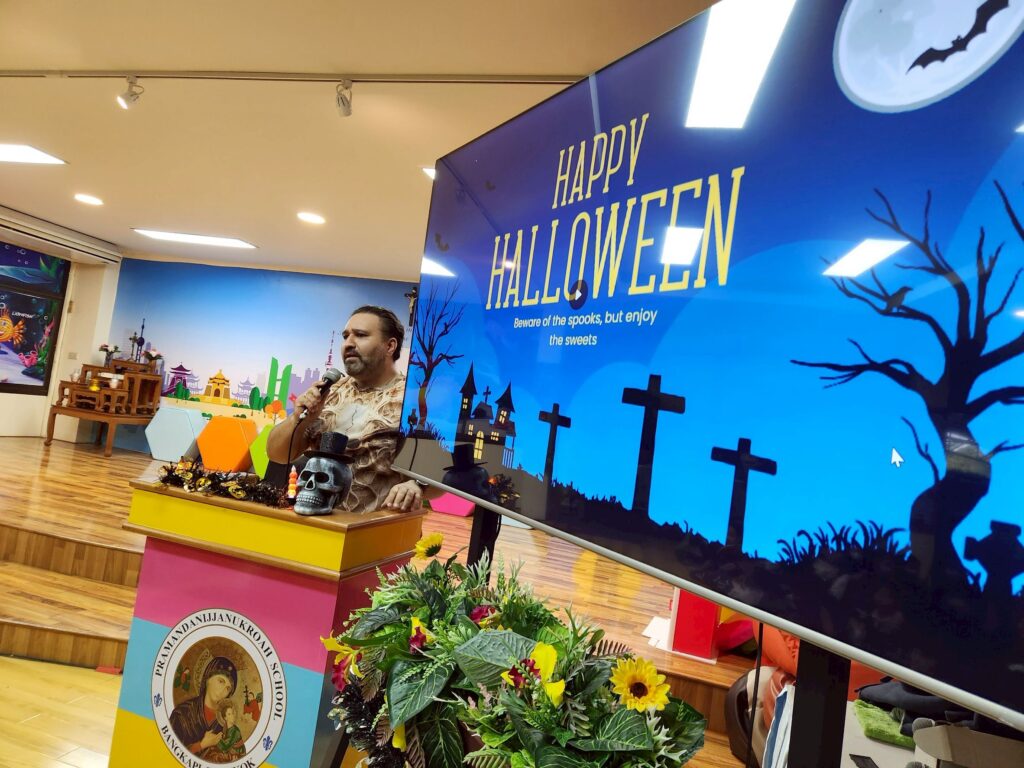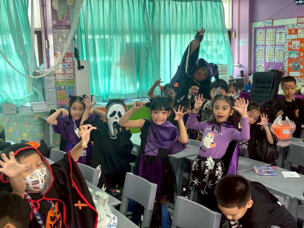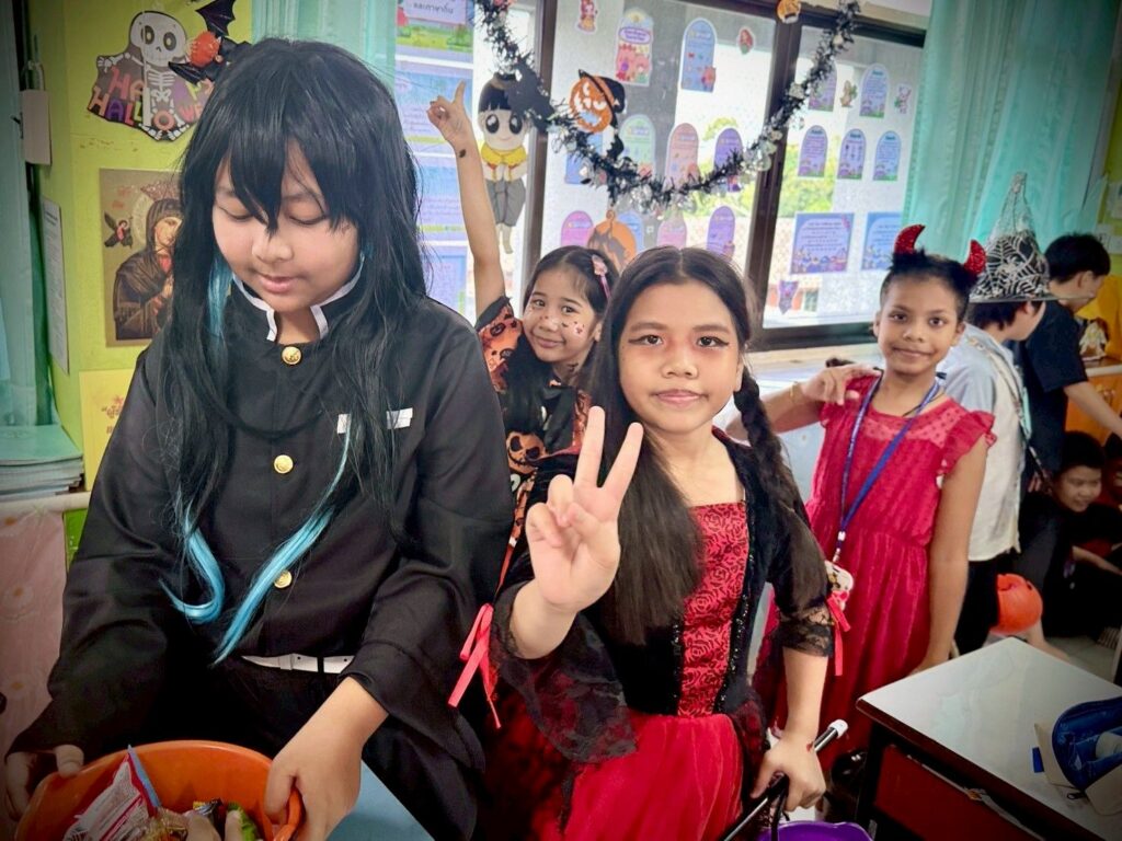 On October 31, the English Program organized a Halloween Day activity, giving students the opportunity to learn about the origins of Halloween. The activities included telling the history of Halloween, performing arts, watching movies, trick-or-treating, and dressing up as various ghosts. Trick-or-treating and exchanging candy provided a fun and enjoyable atmosphere. Halloween falls on the night before All Saints’ Day in Christianity, when the spirits of the dead are believed to come out to wreak havoc on the human world. The ancient Celts therefore held a celebration to welcome these spirits and pray that they would not harm them.
